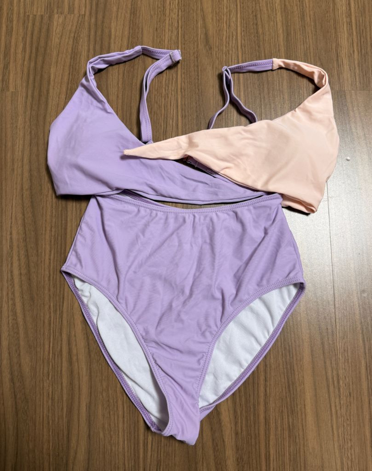 유니크한 투톤 퍼플 모노키니입니다. 퍼플-핑크 조합이 흔하지 않아서 더욱 소장 가치 있어요. 쨍한 색감 덕분에 사진도 예쁘게 잘 나올 것 같아요! 1회 호텔 수영장이용하고 세탁후 보관중이에요