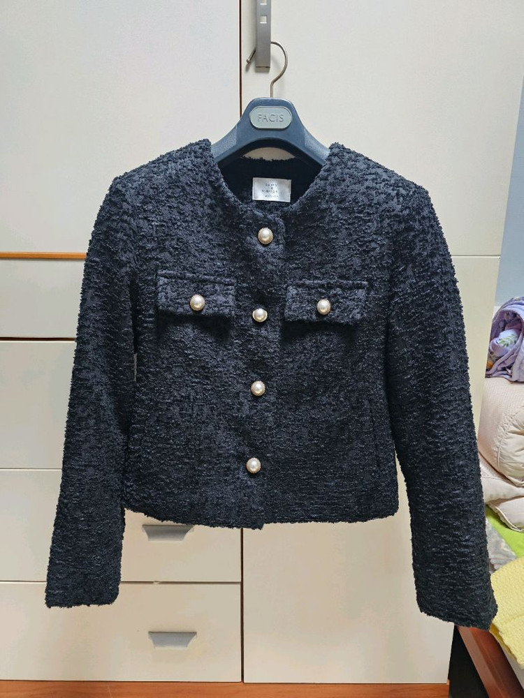 M.studio 블랙 트위드 자켓입니다 고급스러운 트위드 소재에 진주 버튼으로 포인트 라이룸 에서 구매 국내공장 국내생산제작원단으로 자체제작하는 쇼핑몰이고 시즌별로만 만들고 같은 상품 안만들어요 인기 있는것도 원단이랑 공임단가 안되서 못 만드는경우고 있고 해서 신상할인으로 쌀때 샀는데 제가 입고 갈자리가없어서 결혼식 한번 입고 모셔두고 있어서 정리해요 단추도 다 비싼 단추들이라 퀄리티 좋고 실물이 더 이뻐요 사이즈 프리 중국산 저렴이 처럼 작은사이즈 옷 아니에요 새상품급입니다 비슷한류 많아서 안입거나 한두번 입은옷들 정리해요 부산직거래⭕교환반품❌배송비포함❌ 반값택배가능 1900원 우편가능 900원 (파손.분실 책임 없음) 동대신동 지하철역 6번 출구앞 직거래