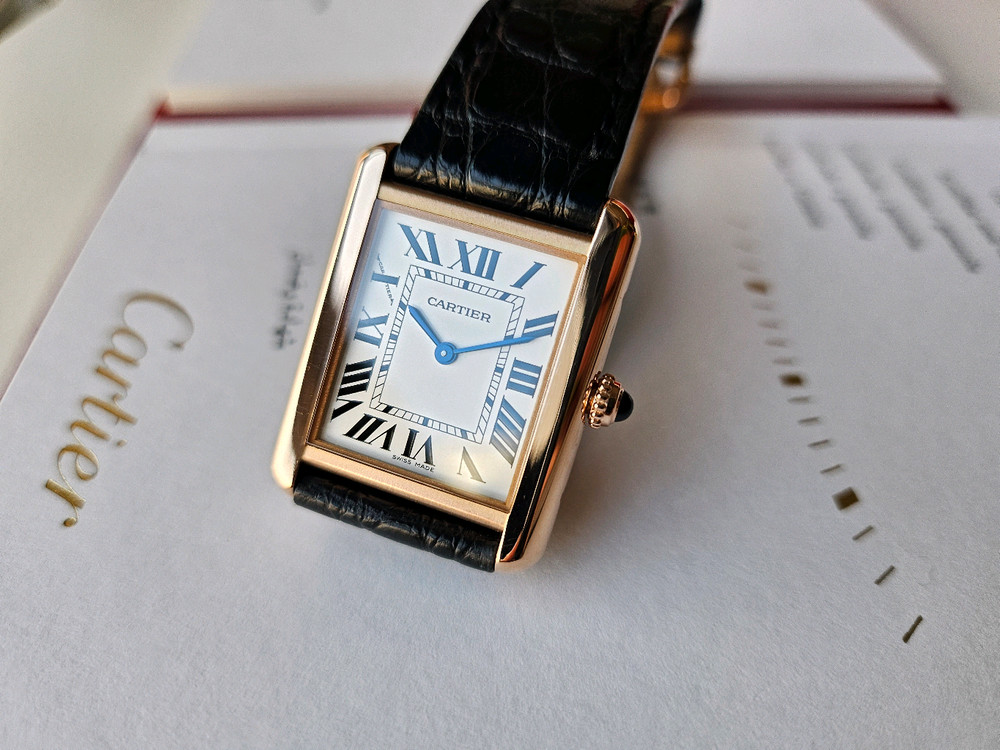 Tank Solo “Cartier Tank Solo SM” – 18K 로즈 골드 스몰 사이즈 케이스와 버클 모두 18K골드로 제작된 사양으로 여성용 사이즈의 악어가죽 스트랩으로 세팅되어 있으며, 라이트 폴리싱이 진행된 상태입니다. 2016년식 정품 보증서가 함께 보존된 제품으로, 실사용과 소장 가치를 모두 만족시키는 구성입니다. ■ 모델명 Cartier Tank Solo SM (Small) 18K Rose Gold Ref.W5200024 2016년식 쿼츠 모델 ■ 모델 특징 케이스, 버클 18K 로즈골드 골드 남녀공용 착용 가능한 클래식 스몰 사이즈 ■ 사이즈 (SM 스몰 사이즈) 케이스 가로: 약 24 mm (용두 제외) 케이스 세로: 약 31 mm ■ 상태 라이트 폴리싱 진행 18K 골드 케이스 컨디션 양호 악어가죽 스트랩 (여성용 사이즈) 쿼츠 무브먼트 정상 작동 유리 스크래치 없음 전체적으로 깔끔하고 관리 잘 된 컨디션 ■ 구성품 시계 본체 까르띠에 정품 보증서 까르띠에 시계 케이스 까르띠에 정품 파우치 까르띠에 쇼핑백 네고 / 교환은 어렵습니다. 관심 있으신 분은 편하게 문의 주세요.