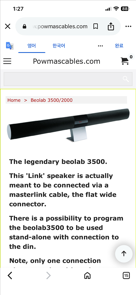 뱅앤올룹슨(Bang & Olufsen)의 베오랩 3500(BeoLab 3500)은 브랜드 최초의 전용 베오링크(Beolink®) 액티브 스피커로, 주로 거실의 메인 오디오 시스템을 주방이나 침실 등 다른 방에서도 즐길 수 있게 해주는 '링크 룸' 스피커로 설계되었습니다. 블루투스를 통해서 음악을 들으셔되구 일반tv를 연결해서 사운드바로 사용하셔도 되구 여러가지 용도로 다 사용가능합니다 디자인이 워낙 고급스럽구 이쁘며, 사운드 또한 빵빵 합니다. 1. 주요 특징 및 디자인 일체형 디자인: 세련된 광택 알루미늄 본체에 스피커, 증폭기(앰프), IR 수신기가 모두 통합된 형태입니다. 디스플레이 및 시계: 제품 중앙에 디지털 시계와 상태 정보를 표시하는 디스플레이가 장착되어 있어 침실용 알람 스피커로도 인기가 높습니다. 다양한 배치: 벽걸이 형태로 설치하거나 전용 테이블 스탠드를 사용하여 배치할 수 있습니다. 2. 기술 사양 (Spec) 항목 상세 사양 크기 / 무게 111 x 9.5 x 11 cm / 10 kg 앰프 모듈 4개의 파워 앰프 모듈 (각 71W) 주파수 범위 56 – 20,000 Hz 드라이버 우퍼(9 cm) 2개, 트위터(1.9 cm) 2개 최대 음압 97 dB (스테레오) 서울 전역과 일산 장항동에서 직거래 가능하며 지방분들은 택배 가능합니다 010-5411-8878