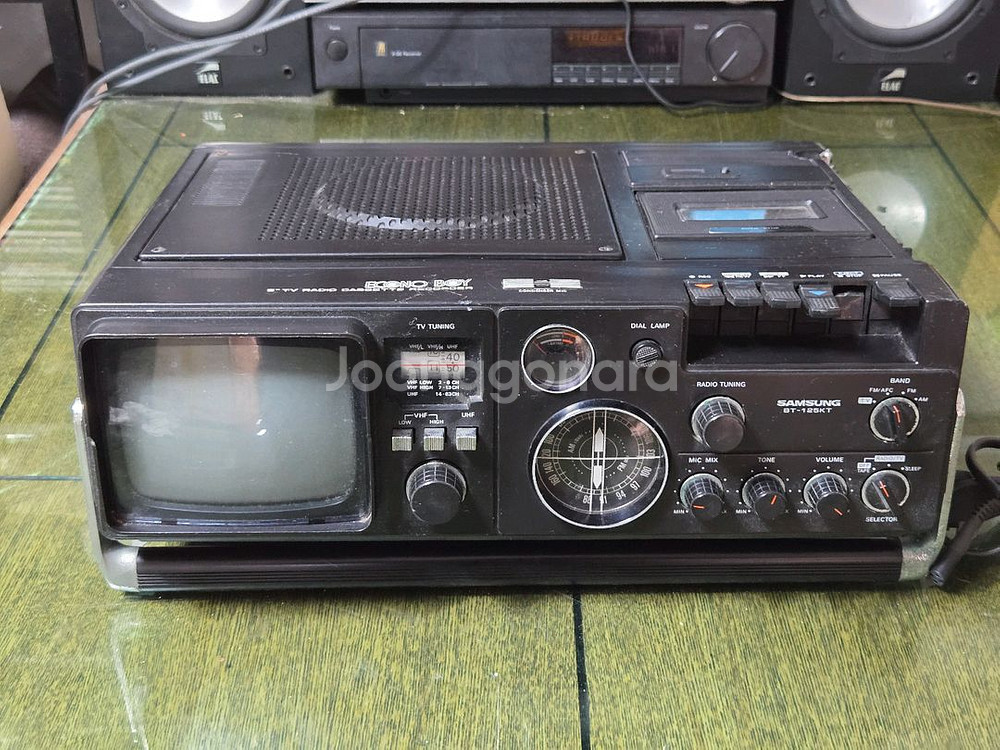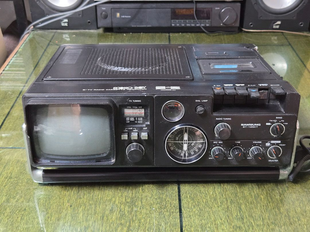 1977년 삼성 5인치 TV 카세트 라디오 이코노보이 BT-125KT 후발주자였던 삼성전자의 오늘을 있게한 삼성 이코노씨리즈 가전의 상징과도같은 5인치 TV카세트라디오 이코노보이 BT-125KT입니다. 이코노보이 1호기 129kt모델에 바로 뒤이어 출시된 모델로 보다 큰사이즈로 카세트라디오 기능을 추가하여 출시. 현재 라디오는 정상 작동되며 카세트는 벨트교체필요, TV화면은 부웅하는 수신음은 들리나 화면은 나오지 않는듯합니다. 전원은 110볼트세팅입니다. FM라디오수신 깔끔하며, 정말로 깔끔하게 라디오사운드 뿜어줍니다. 현재 회로상태 아주좋습니다. 외관은 카세트 정지스위치파손, 접이안테나파손이외 사진보시듯 전체적인 광택이살아있는 훌륭한 상태입니다. 삼성초창기 가전역사에서 상당한 의미를 갖는 귀한물품인만큼 전시용혹은 수리소장하세요. 맨마지막사진, 판매자의 다른상품에 이코노보이 1호기 1977년 삼성 5인치 TV라디오 BT-129KT 모델도 구경하세요