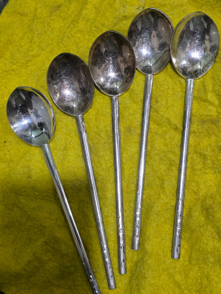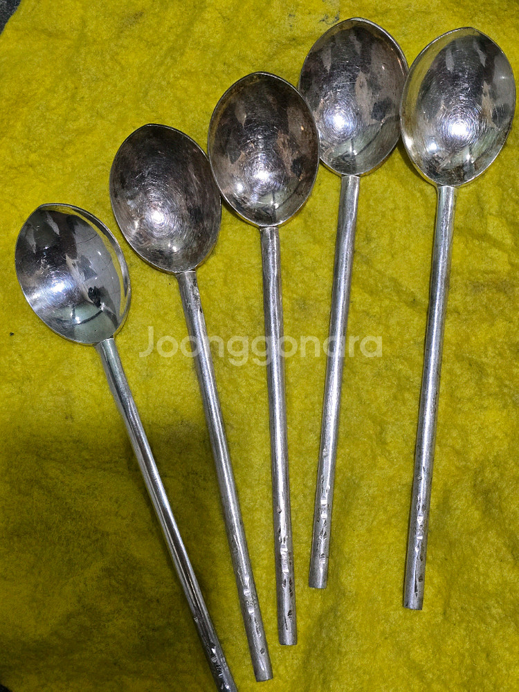 한일백동실버 5개 일괄 판매해요. 변색있는데 왼쪽은 광택나게 닦았습니다. 자석 전혀 반응 없습니다.