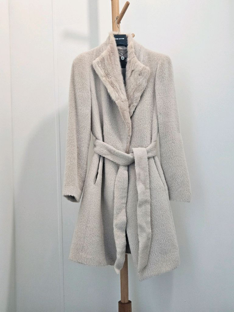 MINIMUM 알파카 모 혼방 코트입니다 - 색상은 아이보리입니다 - 사이즈는 85-92-160(S)입니다 - 알파카 74%, 모 26% 혼방 소재로 부드러운 촉감과 보온성이 뛰어납니다 - 가슴둘레 85cm, 신장 160cm입니다 (가슴단면46 기장 100 팔 60) 벨트가 있어서 허리 라인을 강조할 수 있습니다 -오른쪽 주머니내부가 터져서 바느질처리했어요 안감있어 보이진않아요. -그외엔 상태 좋으며 백화점에서 100정도 했던 고급코트입니다.
