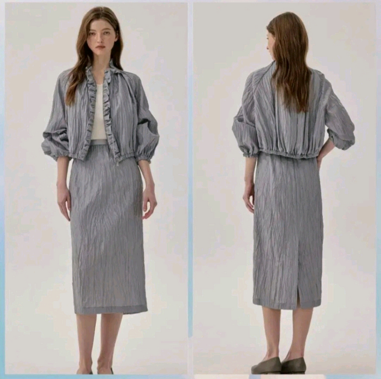 미샤 쟈켓품절❌️❌️스커트만 판매합니다 (쟈켓은 미샤 아울렛에서 구매가능) 셔링디테일 H라인스커트 더현대 대구점에서 할인없이 구매한 옷입니다 55사이즈 색상 GREY 🔴스커트(하의) 총길이80 허리70 엉덩이둘레98 (택가₩429,000원) 1번 잠깐입어서 새옷과 같음