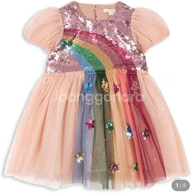 상의는 반짝이는 스팽글 소재이고 하의는 튤 치마로 되어있어요. 너무 예뻐요 사진촬영용 1회 착용한 옷입니다