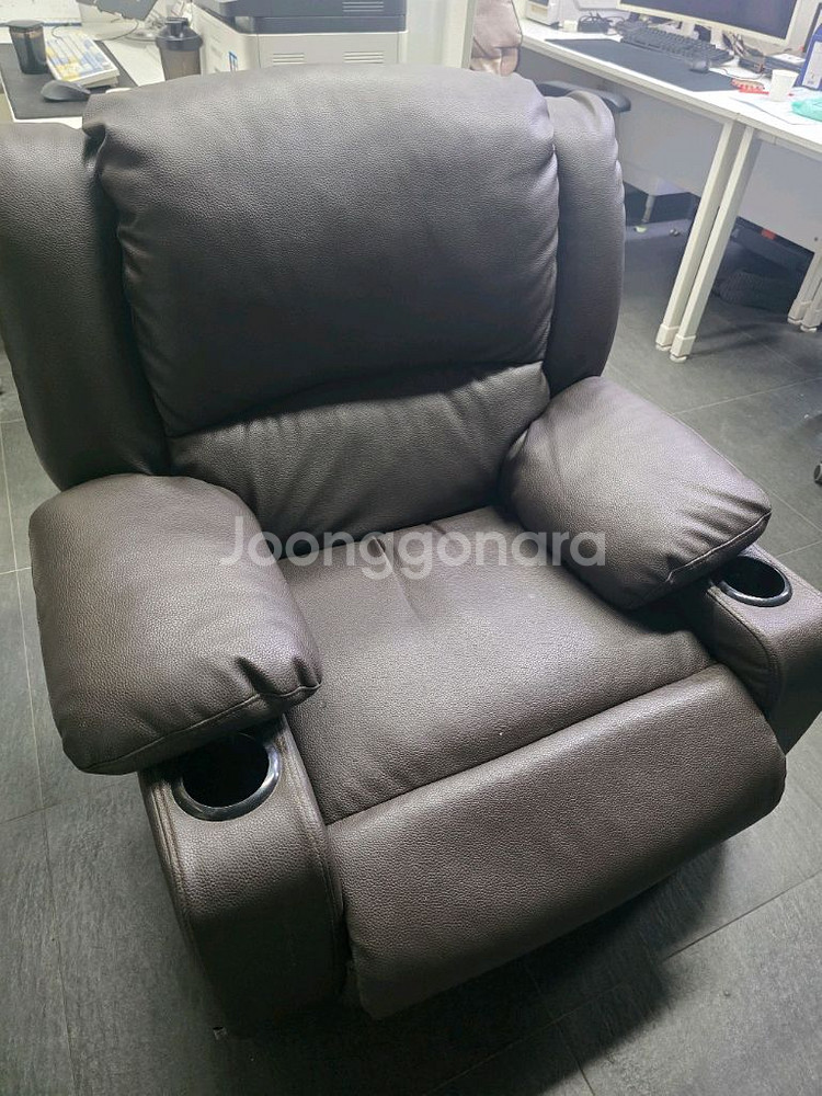 썬퍼니처 1인 리클라이너 소파입니다. 가죽 까짐 있습니다. 잘 작동합니다. 사무실에서 사용했습니다. 거래는 영동대교 북단쪽입니다. 직접 가지고 가시거나 용달 불러가셔야합니다.