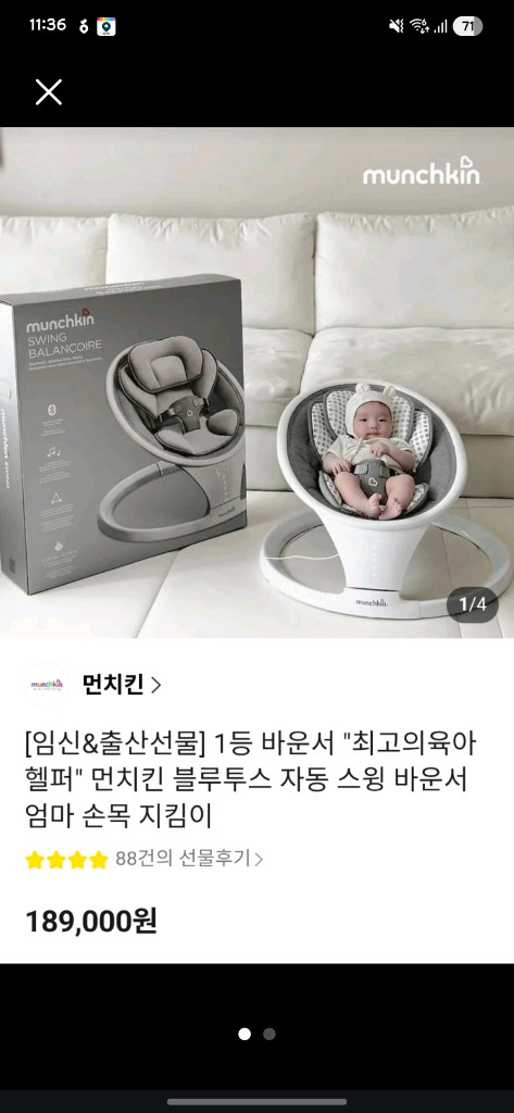 개인정보(거래정보)를 주고받는 행위는 사기에 노출될 수 있으므로 즉시 중고나라로 신고해 주세요먼치킨 자동 바운서입니다. 기존에 가지고있는게 있는데 선물로 들어와서 박스 포장 그대로 미개봉새상품입니다. 아기 수면에 도움되는 인기 모델이라 추천해요.