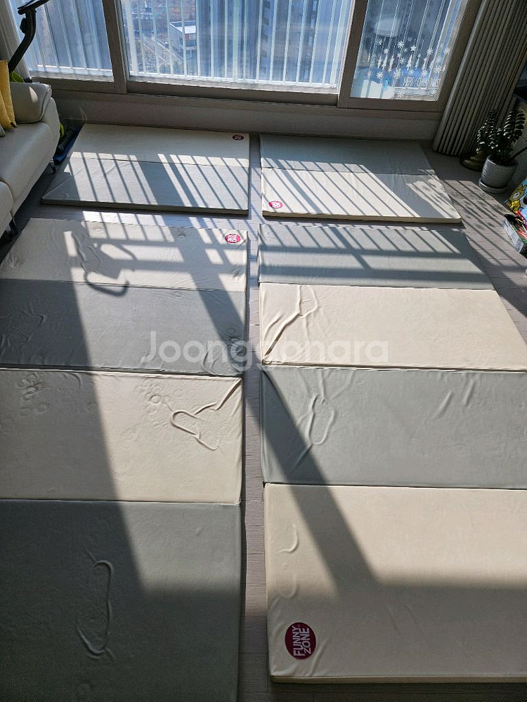 퍼니존 4단 유아 놀이 매트입니다 어린이집, 유치원, 키즈카페에서 많이 사용하는 제품이에요 거실 인테리어에도 잘 어울립니다 생활 스크래치는 조금 있지만 깨끗한편입니다 4단 1개는 한쪽이 오염되었는데 반대는 깨끗합니다 엎어쓰시면됩니다 2단짜리 1개 완전새것, 2단 커버 1개 있음 신규 살때 4단 짜리 1개 35만원주고 샀습니다 쓰시다가 퍼니존 놀이매트에 전화해서 사이즈 이야기하시고 커버 구매하실수있어요 (제작판매) 2단 크기 1230mm x 1380mm x 33mm(두께:3.3cm) 중고 1개 + 새것 1개(커버 교체) + 여분 새커버 1개 포함 일괄 12만 4단 크기 2480mm x 1380mm x 33mm(두께:3.3cm) 중고 3개 일괄 15만