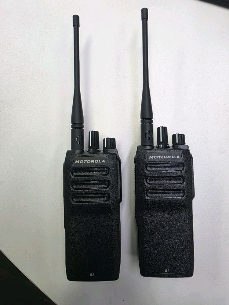 모토로라 R2모델 2개입니다. 구매한지 1년 좀 넘었는데 실사용은 10시간 미만인 거의 새거입니다. 충전 잘되고 소리 옆에서 말하는 것 처럼 또렷하게 잘 들립니다. 소음이 많은 곳에서도 목소리만 딱 잡아내서 상대에게 전달합니다. 기타 악세사리랑 무전기 가방도 같이 드리겠습니다. 직거래는 광진구 자양4동입니다.