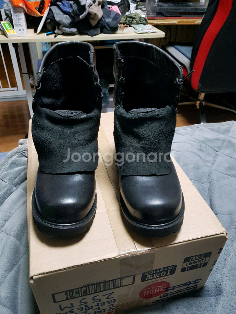 전투화입니다. 사용감은 있지만 전체적으로 양호한 상태예요. 실용적이고 튼튼한 전투화로 다양한 용도로 활용 가능합니다.