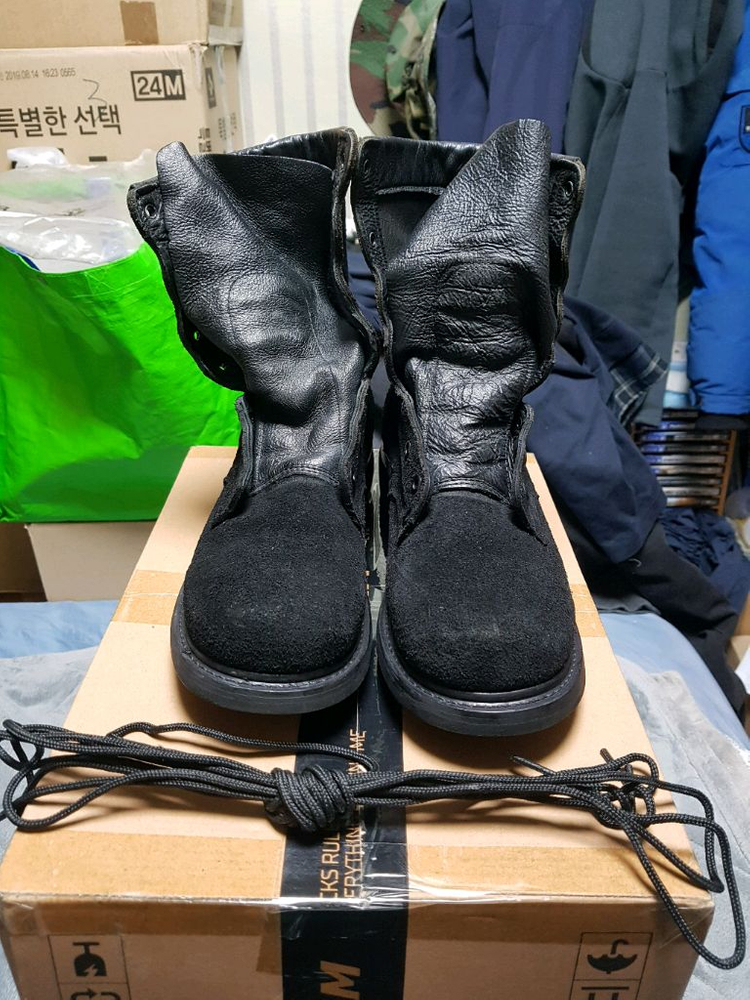 군용 전투화입니다. 사용감은 있지만 아직 착용 가능한 상태예요. 박스와 함께 판매합니다.