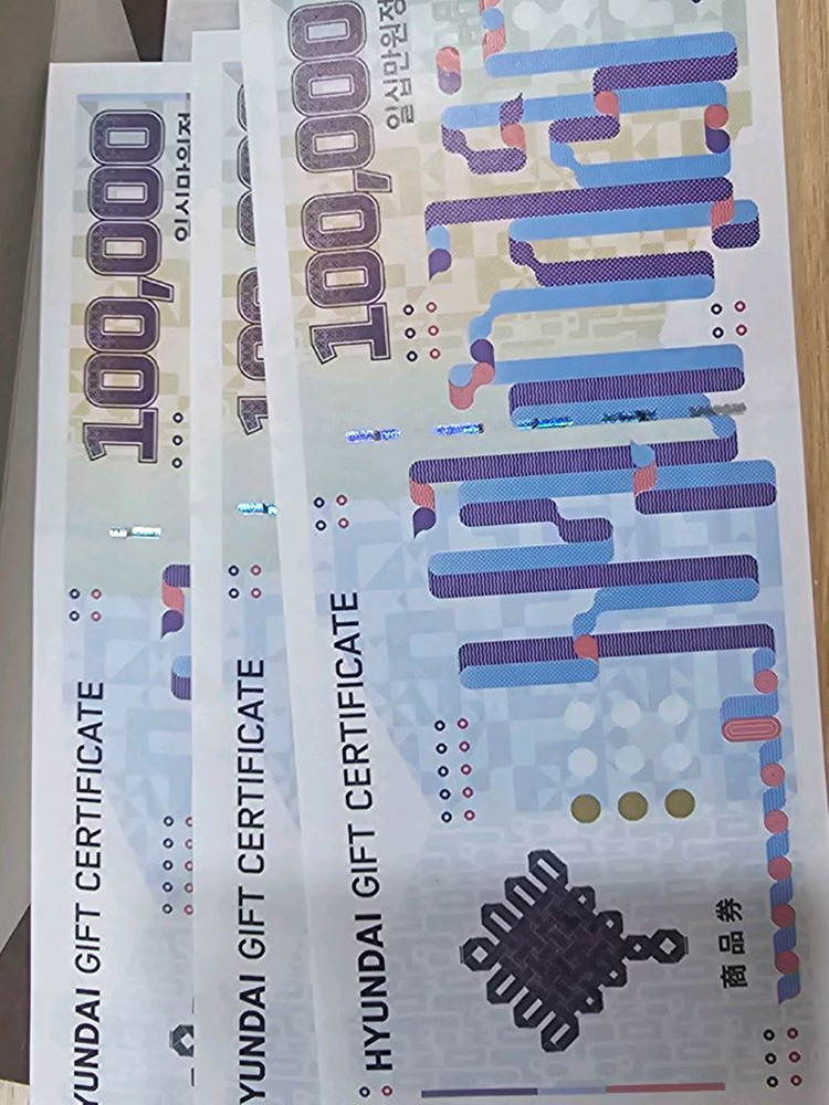 현대백화점에서 사용 가능한 10만원 지류 상품권이에요. 1장당 93000원에 판매합니다! cu반값택배발송입니다~