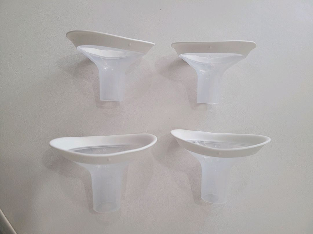 깔때기 21mm 4개입니다. 테두리 부분이 실리콘처리가 되어 있어요. 메델라에 연결하여 사용했습니다. 모유수유 길게 하지 않아 5회 미만으로 사용했고 아기세제로 씻어 보관중입니다. 24미리와 번갈아가며 사용하니 마찰 통증이 덜해서 꿀템이었습니다. 택배비용 구매자 부담으로 보내드려요.