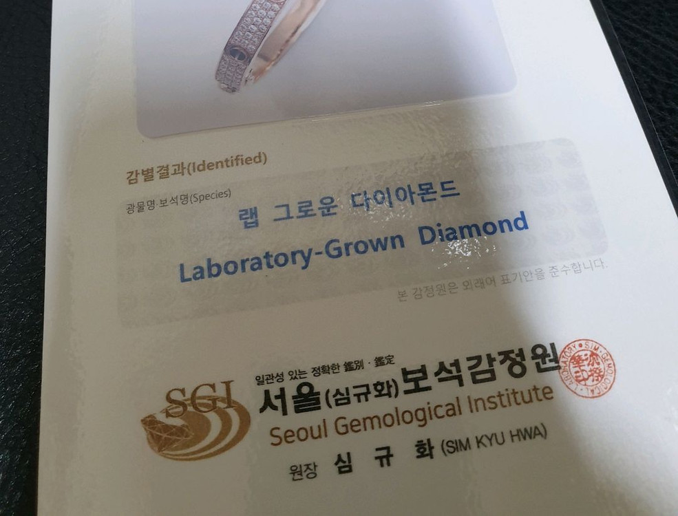 로즈골드 18K 풀파베 뱅글 팔찌 21호 (새제품) 랩 그로운 다이아몬드 셋팅, 36.67g (9.778돈) 서울보석감정원 감정서 포함, 케이스 포함 제작기간도 오래걸리고 세공비가 비싼 제품인데 사이즈 미스로 케이스에 보관중인 새제품 입니다 손목둘레 19.5~ 20cm정도 되셔야 맞습니다 팔찌사진 원하시면 더보내드립니다 최근 금값이 많이 상승하고 있습니다 시세에따라 금액이 변동될수있습니다 금제품이기에 안전한곳에서 현금거래합니다 서울, 경기 직거래 가능합니다