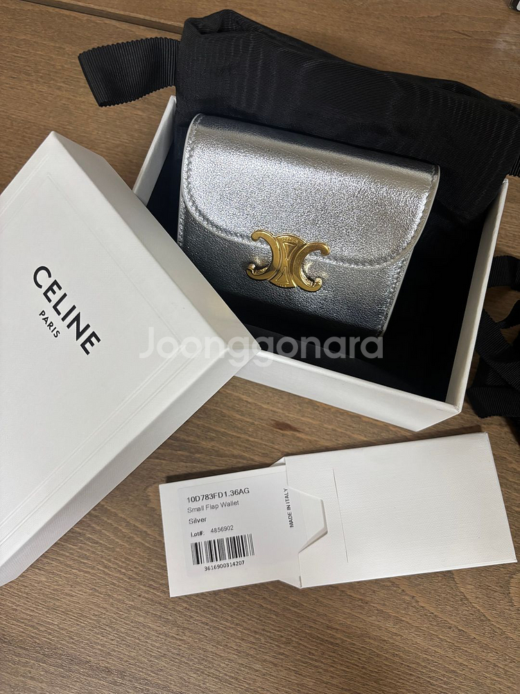 정품 트리옹프 지갑이에요. 박스와 구성품 모두 포함되어 있고 상태도 깔끔합니다. 골드 로고가 포인트인 실버 컬러로 유니크하네요. 선물받았는데 이쁘긴한뎅 나는 잘 안하게되는 한번도 사용하지 않은 새제품입니다.