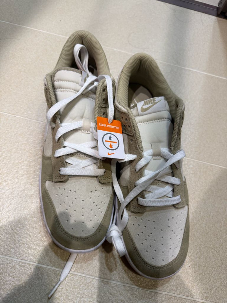 나이키 덩크 로우 스니커즈입니다 베이지와 브라운 색상이 조화롭게 어우러져 트렌디한 느낌을 줍니다 - 스웨이드 재질로 고급스러움을 더했습니다 - 편안한 착용감을 제공합니다 박스 전부 포함 사이즈 280mm 밑창 보시면 알겠지만 새것입니다 약한 때탐이 있습니다 사진 잘 확인해보세요 노리턴 노환불 잘 보고 사세요 그래도 새상품인지라 깨끗합니다 하남시 미사역 근처 직거래 또는 택배거래 가능 택배비는 부담하셔야 합니다