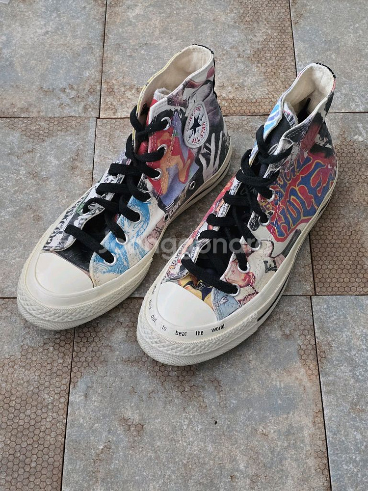 Size : 230(표기 사이즈) Condition : 7.8/10(새상품 기준) 사용감(사진참고) Comment *컨버스 척 70 비트 더 월드 멀티 컬러 모델입니다. *세탁 완료한 제품입니다.