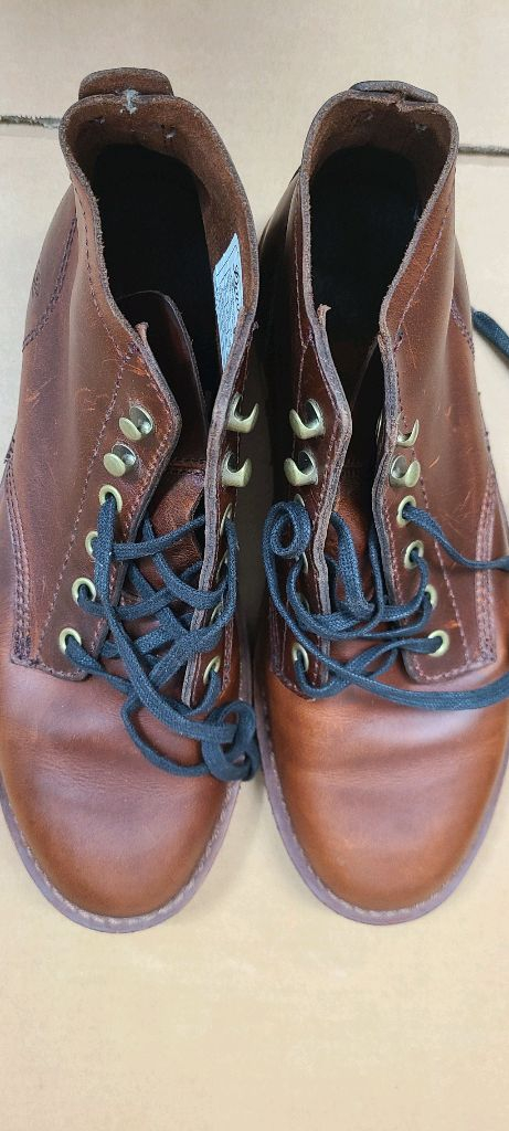 대너 Jack II Dark Coffee 가죽 부츠입니다 상태좋습니다 US 7.5 사이즈로, EUR 41, 255mm에 해당합니다 가죽 재질로 제작되었으며, 밑창에는 Danner 로고가 새겨져 있습니다