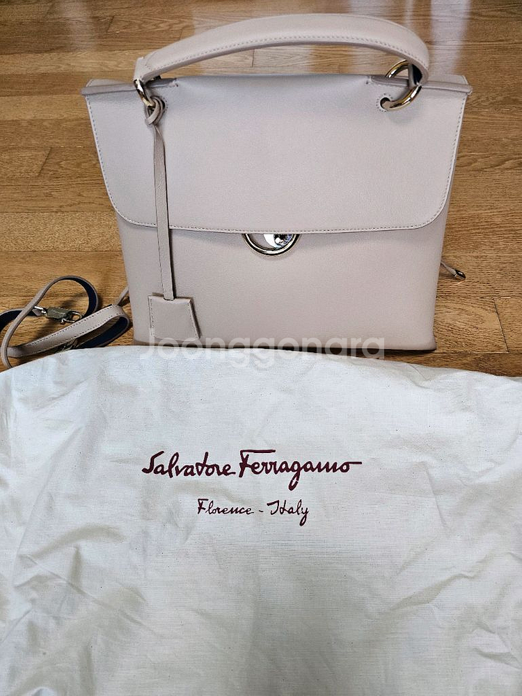 * 중고물품거래사이트이니만큼 예민하신분은 구입문의 절대 사양합니다. (구입후 환불은 어떤 경우에도 절대불가함을 알려드리니 신중히 결정해서 구매하시기 바랍니다.) @ 페라가모 간치니 톱핸들백 - 신세계 백화점에서 구매후 잠깐 두번 사용하고 보관하고 있는 깨끗한 제품입니다 - 사이즈: 32.5 (윗면 28.5) * 23 * 17cm - 스트랩길이: 약 40cm - 원산지: Made in Italy - 소재: 송아지 가죽100% - 색상: 라이트 베이지 - 토트백, 숄더백 다양하게 연출할 수 있는 활용도가 좋은 고급스런 백입니다 - 페라가모 간치니 로고가 안쪽으로 숨어있는 제품입니다 - 안쪽 색상은 보라색으로 포인트를 주고 수납공간도 여유가 많아 수납하기에도 정말 좋은 제품입니다 - 구성품: 본품, 더스트백, 전용박스