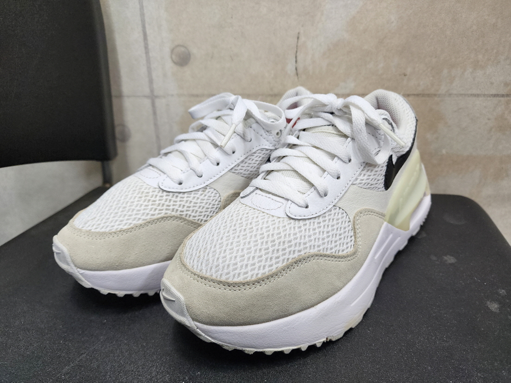 에어맥스 운동화예요. 화이트와 베이지 컬러 조합이 깔끔하고 착용감도 좋습니다. 전체적으로 상태 양호한 중고 제품입니다. 문의사항은 반드시 채팅 보내주시면 빠르게답변드리겠습니다 (240)나이키 우먼스 에어맥스 시스템 런닝화/240mm/상태우수 ▶브 랜 드 : 나이키 ▶사 이 즈 : 240mm *신체 사이즈 알려주셔도 몰라요 실측 확인 부탁드려요 ^^ *가격흥정에는 답장 드리지 않아요 죄송합니다 ㅜㅜ *중고제품 특성상 교환 환불 불가합니다 ▶상 태 : A ***제품상태*** A++(미착용이나 새제품) A+ (중고제품이지만 상태 좋고 사용감이 거의없음) A (중고제품 약간의 오염정도) B (중고제품 작은상처나 오염) C (중고제품 변색이나 심한상처 오염 작업복 추천제품) *배송안내* -모든 상품의 배송은 CJ대한통운으로 배송이 됩니다. -월 ~ 금요일 오후 5시 이전까지 입금이 확인 된 경우 당일발송 합니다. -도서/산간 지역은 2~7일 정도 지연 및 추가운임비 3,000가 발생할 수 있습니다. ※특이사항 (모든 구제 제품은 사용감 조금씩 있습니다) * 상태좋음/미세오염/미세상처