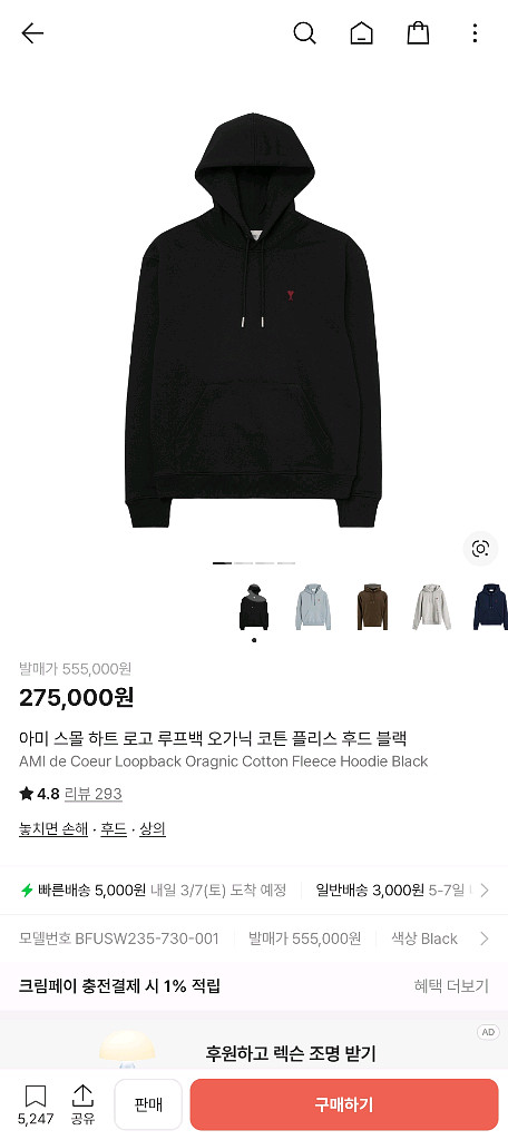 아미 스몰 하트 로고 후드티 블랙 색상 XL 사이즈입니다. - 면 100% 소재로 제작되어 편안한 착용감을 제공합니다. - 가슴 부분의 아미 시그니처 로고 자수가 포인트입니다. - 후드 부분 스트링으로 사이즈 조절이 가능합니다. 미착용 새 상품입니다. 구매 후 택도 안 뗀 상품입니다. 구매했는데 생각했던 사이즈가 아니라서 판매합니다. 크림에 다시 판매할까 하다가 귀찮아서 당근으로 판매합니다. 크림보다 싸게 판매합니다. 환불 불가합니다.