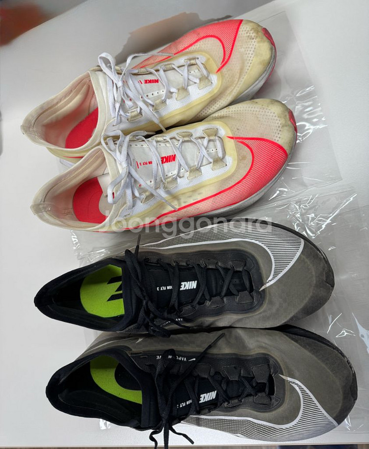 줌플라이3 블랙 (285) : 20,000 4년전에 군대에서 신고 안 신게 되어 팝니다. 줌플라이3 핑크 (280) : 10,000 블랙보다 약 1~2년 전에 사서 썼습니다. 카본플레이트 있어서 반발력 있는 런닝화 맛보기로 추천해요 박스x, 신발만o 반택 +2500