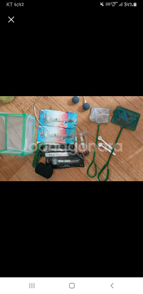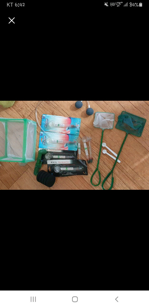 사진누르면 전체사진 보여요.몽땅해서 5천원. 수족관 용품 수족관에서 필요한 용품 세트로 구성되어 있습니다 - 뜰채 2개 -온도계 7개 - 치어 새끼 분리통1개 - 여과기 1개 -콩돌2개 -먹이 사료스푼2개 몽땅해서 5천원에 싸게드립니다 어항 관리에 필요한 기본적인 도구들을 갖추고 있습니다