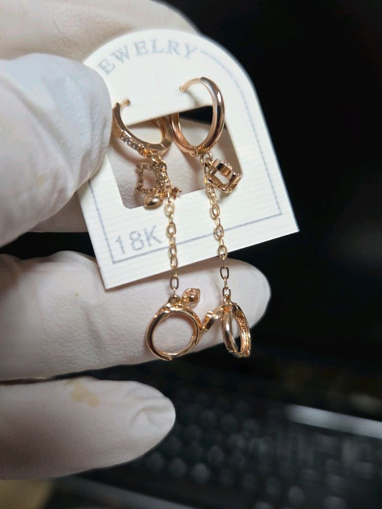 로즈골드 0.6돈 귀찌라 두개연결돼는 귀걸이 귓볼얇으신분가능 *18k아닐때만 반품됩니다 페이 가격아닙니다 우체국택배