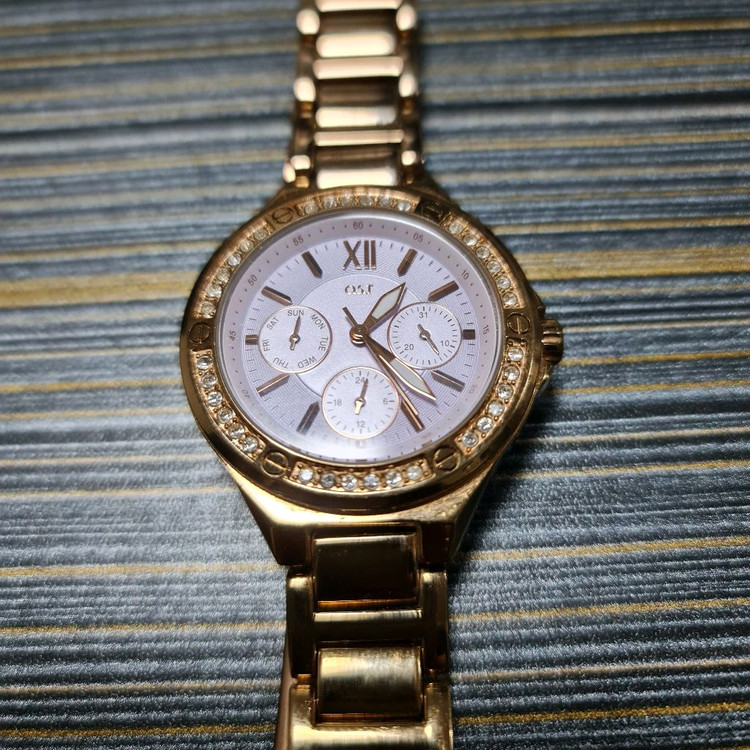 O.S.T 로즈골드 여성 메탈 시계입니다 전체적으로 깨끗하고 좋은 상태를 유지하고 있습니다 메탈 스트랩으로 되어 있으며, 쿼츠 무브먼트를 사용해 정확한 시간을 알려줍니다 생활 방수 기능과 미네랄 글라스로 일상생활에서 편하게 착용하실 수 있습니다 케이스 직경은 약 30mm로 적당한 크기입니다