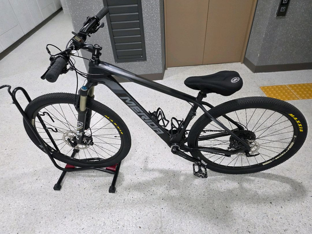 메리다 빅세븐 풀카본 xt에디션 입니다 사이즈m 타이어 10일전 멕식스 신품으로 교체했어요 속도계 달아놨어요 특별히 큰 기스는 없고 눕혀두거나 세워둘때 닿는부분 약간에 스크레치 있어요 브레이크랑 다 xt입니다 자전거 거치대 포함입니다 네고문의는 안받을게요