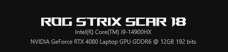 ASUS G18 STRIX SCAR 4080 모델입니다. 24년도 10월에 구매했습니다. 구매당시 윈도우 11 홈 깔려있는 상태로 받았습니다. GPU max TGP 175W 로 어지간한 게임 전부 돌아갑니다. VRAM은 GDDR6 12GB 로 넉넉합니다. CPU는 인텔 14세대 I9-14900HX 입니다. 코어는 8P 16E 총 24코어입니다. 램은 기존 16+16 램에서 32+32 램으로 교체했습니다. * TeamGroup T-CREATE DDR5-5600 CL46 RAM 총 64GB SSD 는 기본 1TB + 2TB 추가했습니다. 배터리 효율은 87.6% 입니다. 화면은 18인치로 추가모니터없이 게임할 수 있을정도로 크고, 240hz 에 miniLED 로 1100 니트까지 올라갑니다. 화면은 안티글레어 코팅되어있어서 빛반사 없습니다. 성능상 하자는 없고 화면도 기스 없이 깨끗하고 다만 키보드쪽이 사용감이 좀 있습니다. 외관의 경우 상판은 보호필름 붙여놓고 사용했고 하판의 경우 아래쪽에 기스 있습니다. * 상판 보호필름 부착상태입니다. 18인치 노트북 담을 수 있는 노트북 가방 같이 드려요. 고가인만큼 직접 만나서 직거래 희망합니다. 직거래의 경우 주로 포항-대구-울산까지 가능, 주말의 경우 서울도 가능합니다.