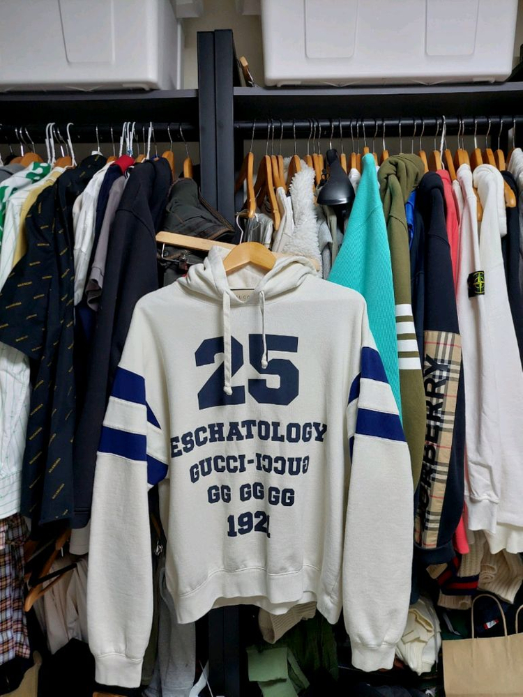 아이보리 색상의 구찌 1921 프린팅 후드티입니다. M사이즈고, 백화점에서 구매한 정품입니다. 팔 부분에 네이비 색상 포인트가 들어가 있습니다. 별도 문의 없으시면 바로 안전결제 부탁드려요! 도톰한 후드티입니다 모델컷 참조하시구요100-105정도로 보심됩니다 상태좋고 이쁩니다 직거래가능 대전입니다