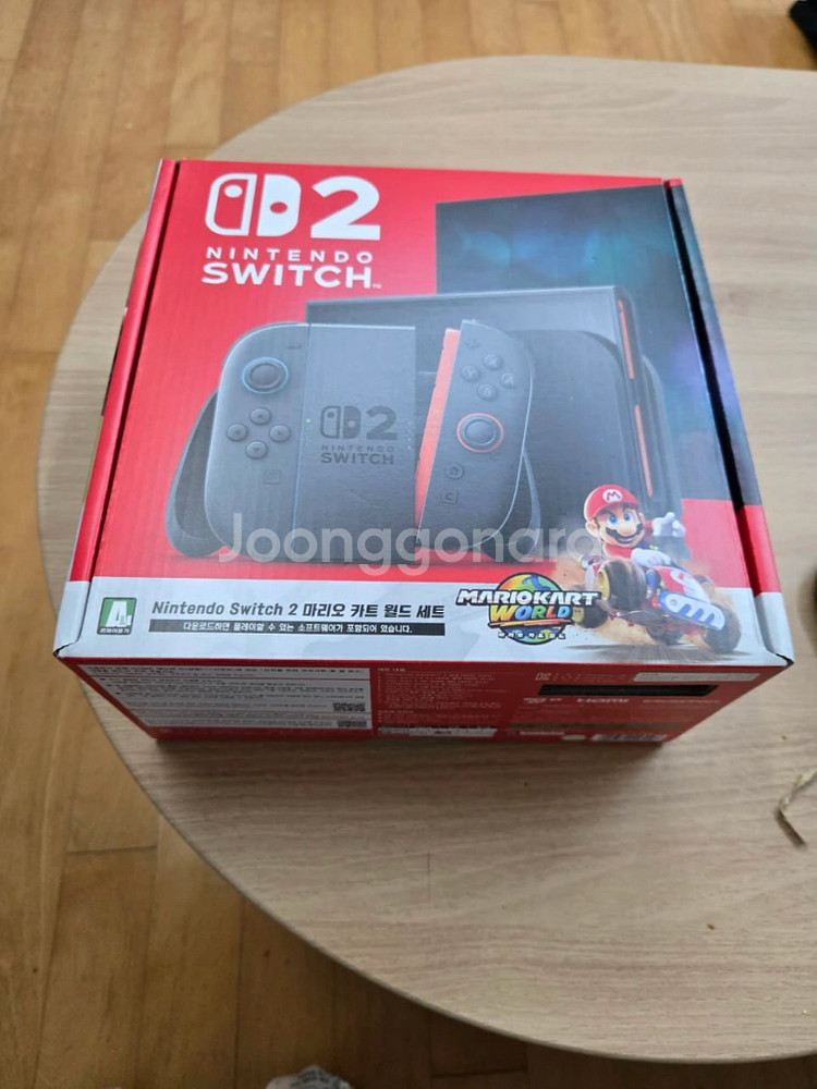 닌텐도 스위치2 마리오 에디션이에요. 박스 상태가 깨끗하고 새 제품 같아 보입니다. 마리오 캐릭터와 함께하는 특별한 에디션으로 컬렉션 가치도 높을 것 같아요!