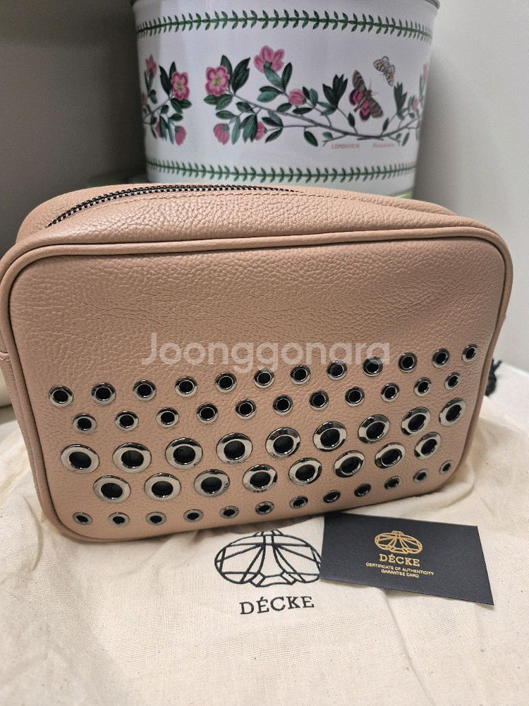 개인정보(거래정보)를 주고받는 행위는 사기에 노출될 수 있으므로 즉시 중고나라로 신고해 주세요정품 스터드 장식 파우치백이에요. 베이지 컬러에 블랙 스터드가 포인트로 들어가 있어서 고급스럽고 세련된 디자인입니다. 상태 양호하고 더스트백도 함께 드려요!