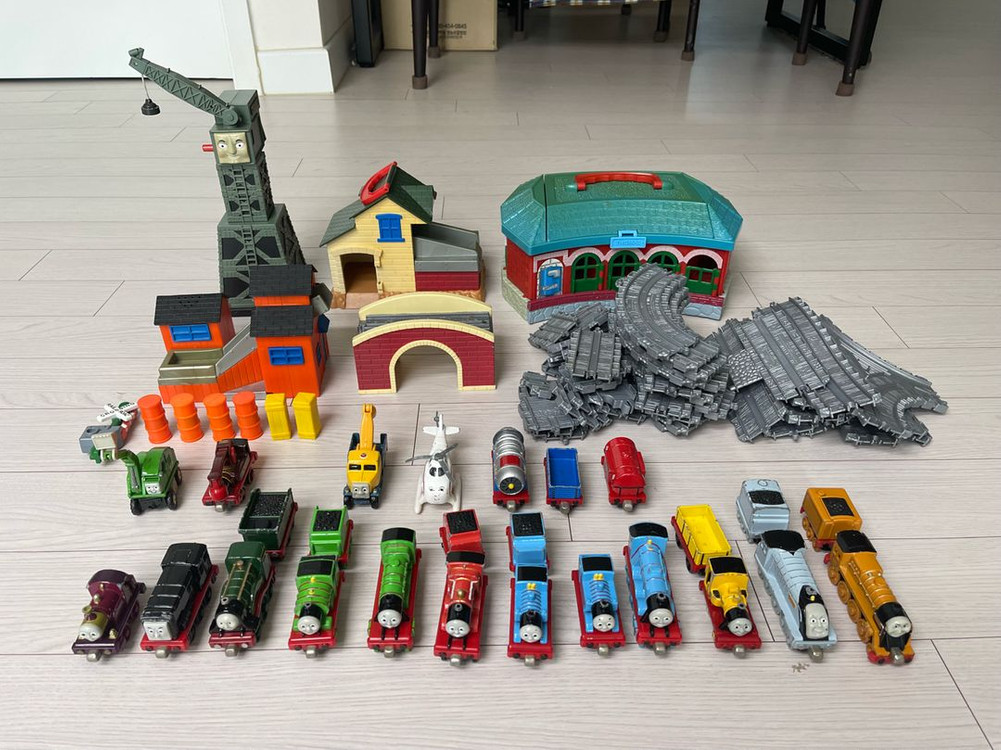 사진에 있는 토마스 자석기차, 레일, 건물 일괄로 판매합니다. 레일로 자유롭게 기찻길을 만들고 건물로 마을도 꾸미고, 다양한 기차와 친구들로 놀이하기 좋아요. 철제다 보니 일부 까짐과 사용감 있으니 실사 확인해주세요. 무게와 부피가 있어 직거래 선호합니다만 택배도 가능합니다. 편하게 문의주세요.