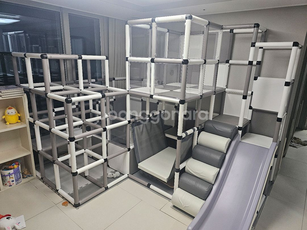 플레이가드 정글짐 실내 놀이터입니다 플레이가드 홈페이지에서 구매했으며 구매일시는 25년 4월이며 홈페이지 PT-0904모델에서 정글짐이랑 투명판넬 교체 했습니다. 색상은 그레이화이트입니다 아이 대근육 끌어올리는데 좋았습니다 사진상 사이즈는 가로285cm 세로205cm입니다 190만원->170만원으로 가격내림 플레이가드 홈페이지에서 이전설치 신청하시면 됩니다 이전설치비는 본인부담입니다 중고거래상 교환,반품 불가입니다