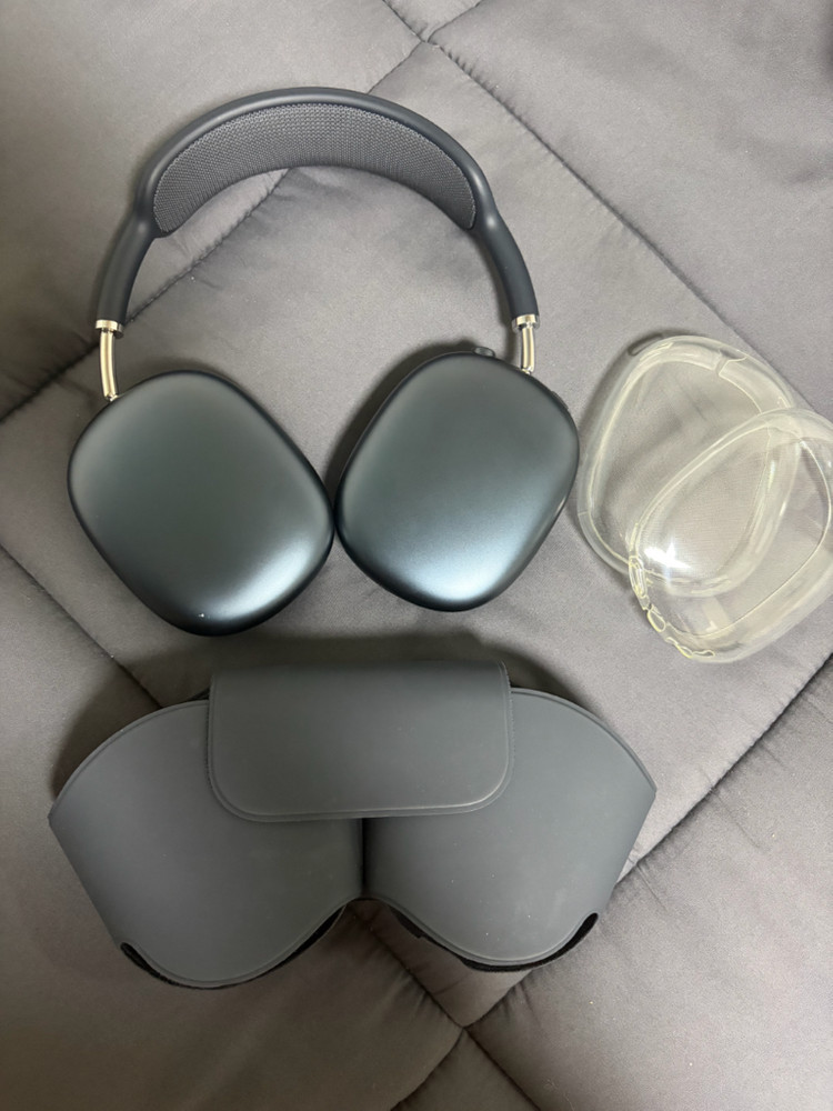 에어팟 맥스 2 미드나이트 판매 합니다! 박스는 없습니다 ㅜㅜ 찍힘은 사진에 보이는곳 한곳 있구요 다른 늘어짐 찍힘 기스 성능상 하자 없습니다! 보이는 구성품 다 드려요! 직거래는 강서구청에서 합니다!