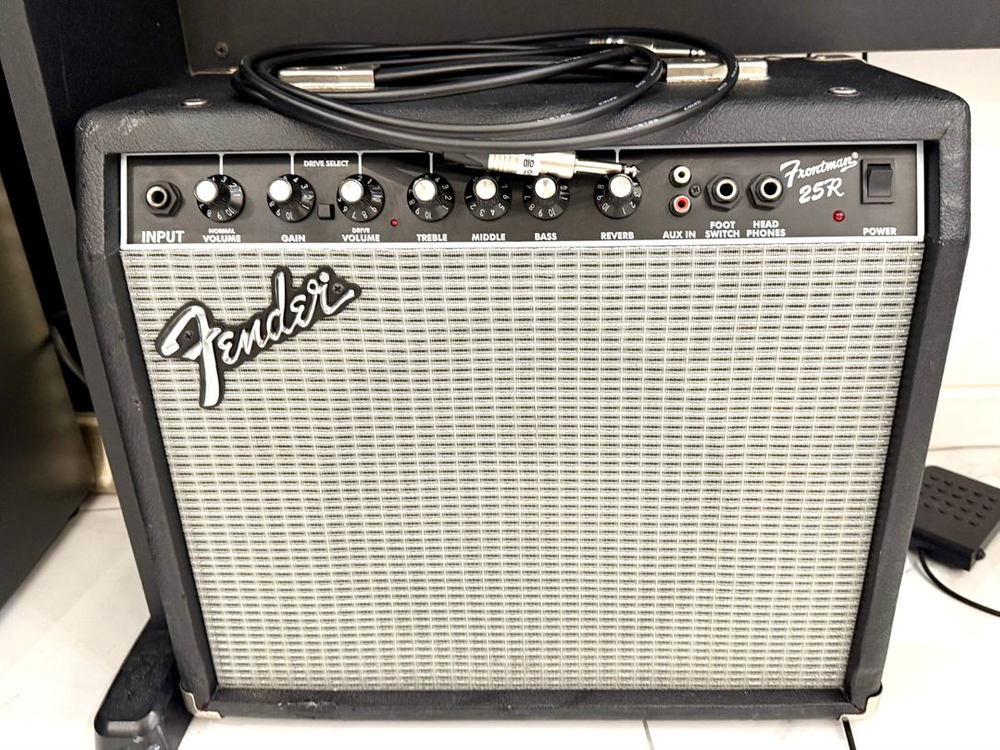 펜더 Frontman 25R 기타 앰프입니다 음향기기 특성상 강원 서울 가능하면 직거래해요 - 클린톤과 드라이브톤 전환이 가능합니다 - 리버브 효과를 지원합니다 AUX IN, FOOT SWITCH, PHONES 단자가 있어 다양한 활용이 가능합니다