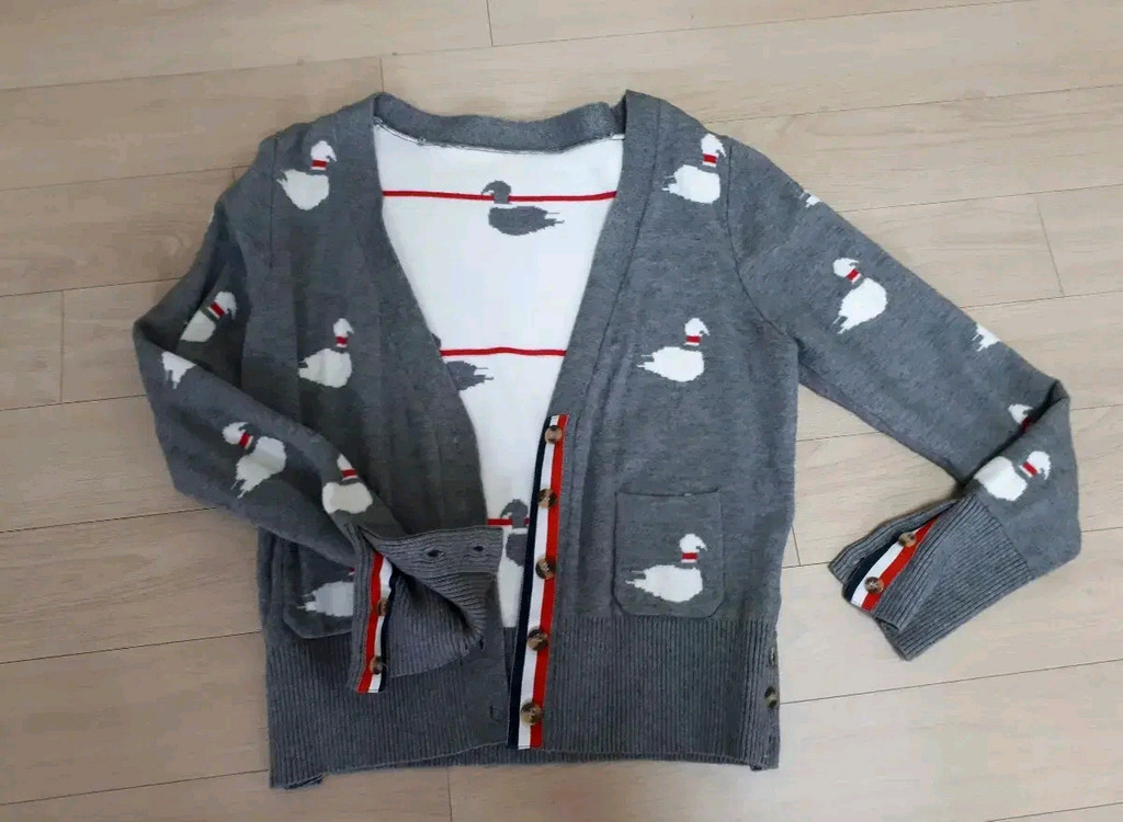 📏 실측(대략) ➡️ 가슴단면: 약 48cm ➡️ 총장: 약 58cm ➡️ 어깨: 약 40cm ➡️ 소매: 약 58cm 🎨 색상: 그레이 ✨ 포인트: 오리 패턴 + 삼색 스트라이프 버튼 라인 📌 상태 안내 ⚠️ 사용감 있음 ⚠️ 소매 및 하단 부분 작은 구멍 있음 (사진 참고) ➡️ 예민하신 분은 구매 피해주세요 ➡️ 편하게 착용하실 분 추천 🧶 두께감: 보통 🌸 봄 / 🍂 가을 착용 좋음 💬 중고 특성상 교환·환불 불가 부산입니다 그외지역 택배거래 4천 공일공 사이칠이 오오오일