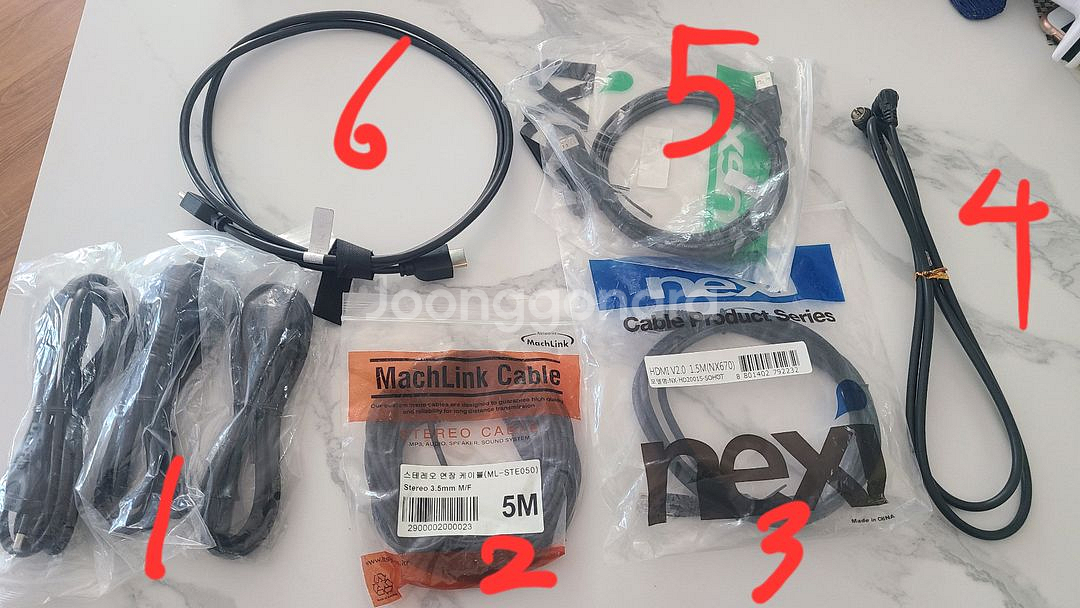 HDMI 스테레오 각종 케이블 새제품 1. 모니터 파워 케이블 AC 전원 코드 개당 1천원 2. 마하링크 스테레오 연장 케이블 1천원 3. 넥시 HDMI V2.0 케이블 1천원 4. TV 유선 안테나 동축케이블 1천원 5. 넥시 USB 2.0 AM-AF 케이블 1천원 6. 넥시 HDMI 케이블 2천원