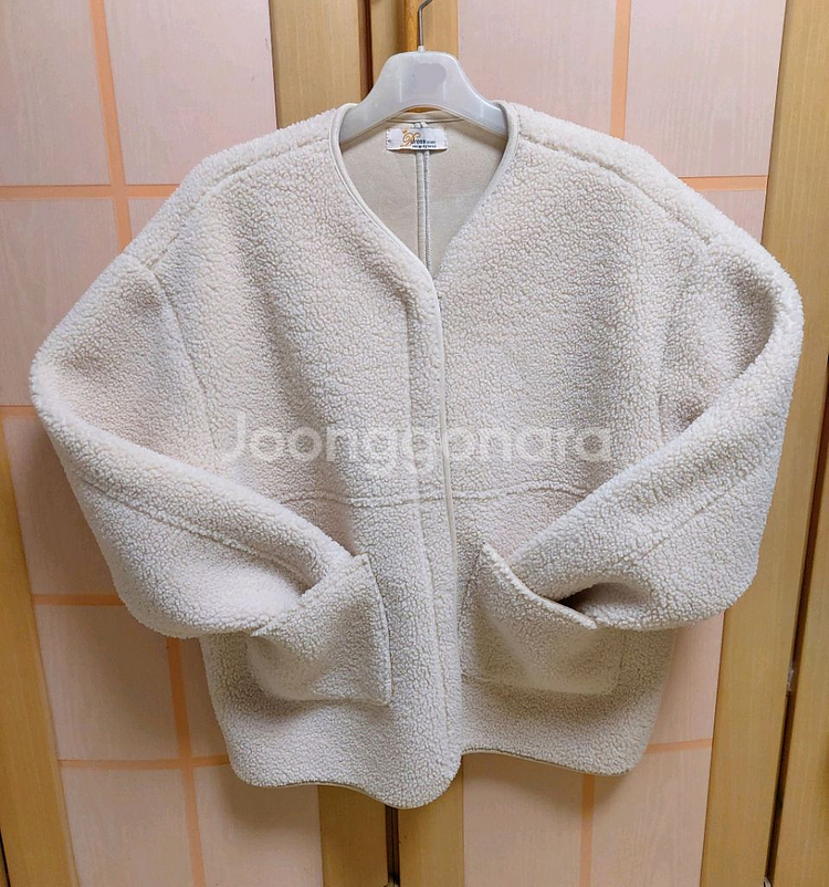 드레스코드 아이보리 뽀글이 오버핏 자켓입니다. 65% 면, 35% 폴리에스터 혼방 소재로 부드럽고 따뜻해요.(무스탕 소재) 가슴 단면 약 65cm, 총장 약 67cm로 편안하게 착용 가능합니다. (77~88) (사이즈 꼭 확인 하세요!) 가볍게 걸치기 좋고, 어떤 옷에도 잘 어울리는 아이보리 색상입니다. 사진에서 보시다시피 상태 깨끗하고 좋습니다. (큰하자는 없지만 중고인점 감안 하시고 구입 하세요) *아이보리 뽀글이 자켓+인조 밍크 후드 자켓 두벌 구입시 5만원! (구입 후 반품, 환불 불가)