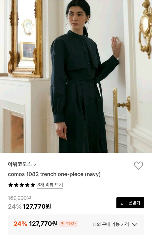 새상품 아위코모스 1082 네이비 색상 트렌치 원피스입니다. 단정한 트렌치 코트 디테일의 원피스로 오픈하면 아우터로로 아주 멋스러워요 단정하고 우아한 원피스 멋스러운 트렌치코트 활용도가 좋아요 하나가지고있음 격식있는자리고 평상시도 잘 입으실꺼에요 사놓고 비슷한옷들이많아 내놓아요 브랜드답게 원단도좋고 디테일이 잘만들어진옷이에요 어깨51 가슴44 총장122