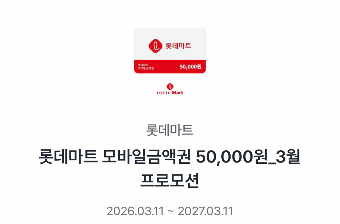 롯데마트 모바일금액권 5만원권 판매 27년 3월 11일 까지 46000원 0일공 99일칠 09일일