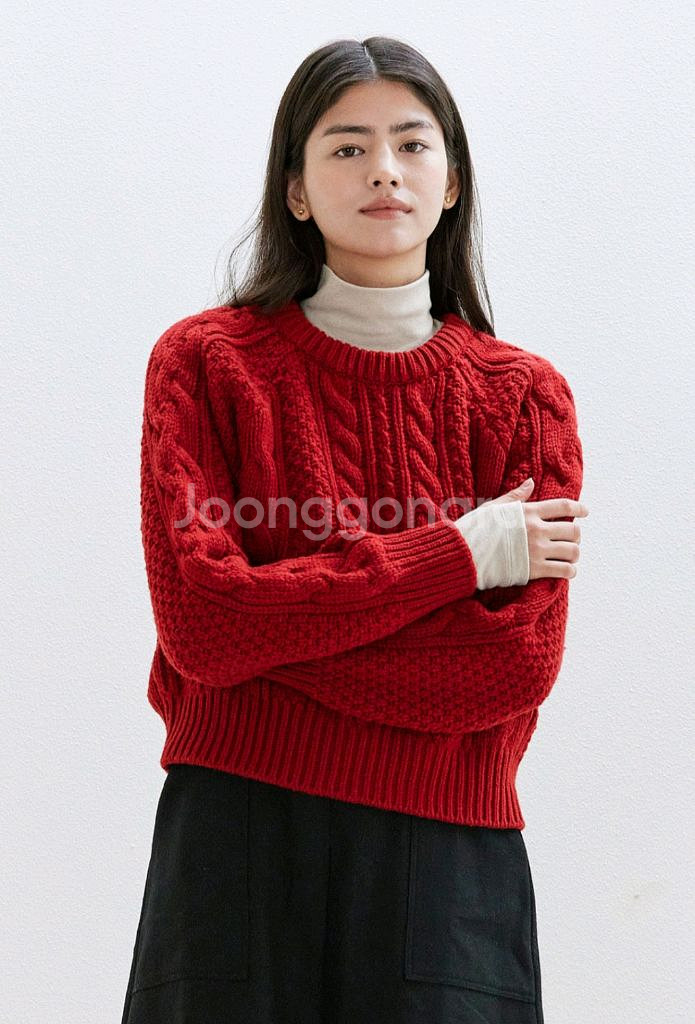 ▪️미개봉 새 제품 높은 울 함량 케이블 니트에요. 톤다운된 레드 색감이 매력적인 제품입니다. 핏이 예뻐서 스커트, 팬츠 모두 잘 어울려요.