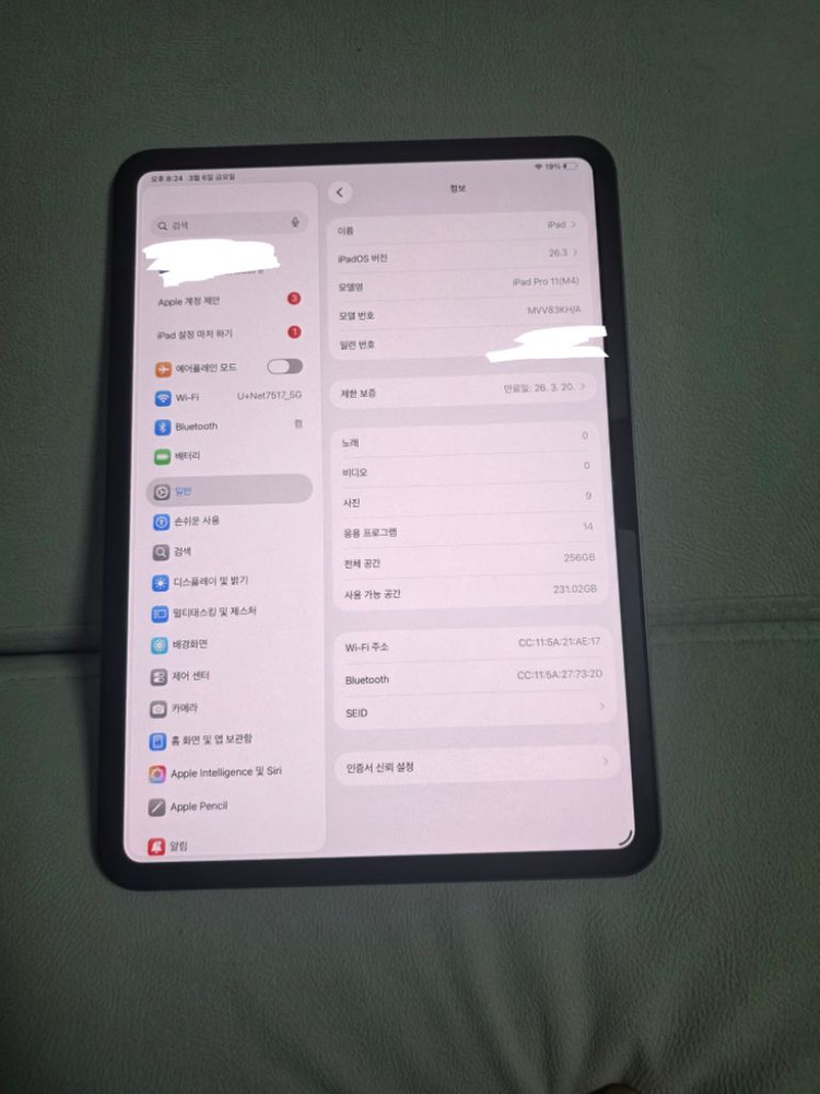 애플 아이패드프로11 M4 스페이스블랙 256GB WIFI