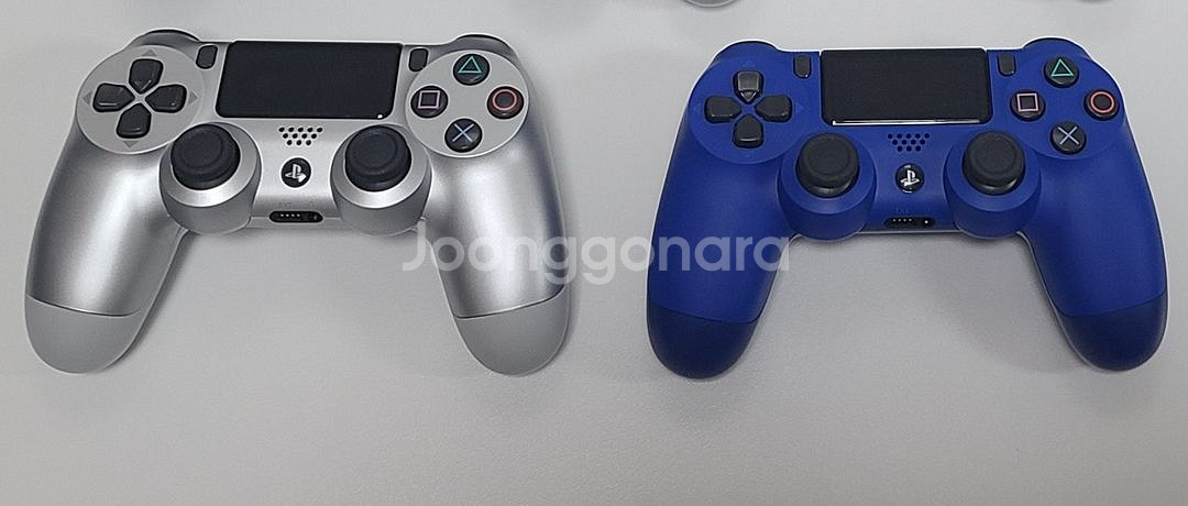 플레이스테이션 4용 듀얼쇼크 4 정품 컨트롤러 2개와 충전 및 보관이 가능한 2구 거치대 일괄 판매합니다. (구성품) 듀얼쇼크4 실버 +듀얼쇼크4 블루 +2구 충전 거치대 + 전원 케이블 (상태) 모든 버튼 및 스틱 이상 없이 정상 작동하며,외관 상태 깨끗하며 거치대 포함이라 보관/충전 편리합니다. # 참고: 중고 물품 특성상 사용감은 있을 수 있으며, 단순 변심으로 인한 환불은 어려운 점 양해 부탁드립니다.