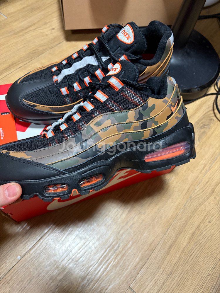 나이키 에어맥스95 카모 290 나코택 제품이며 새제품에서 5-6회 착용 애눌x 결제시 익일 아침 배송