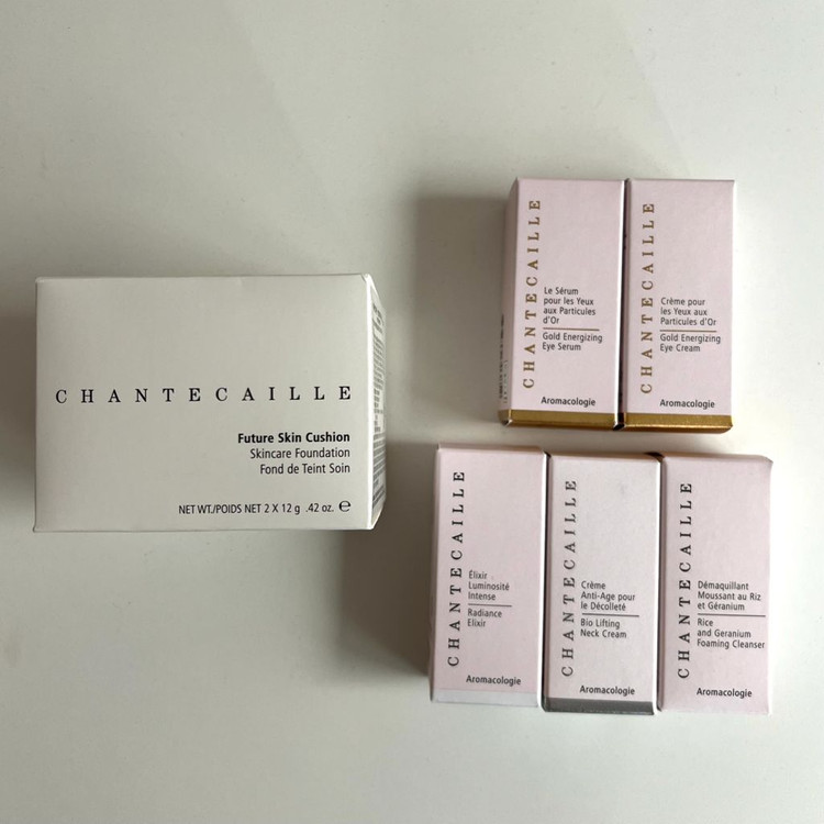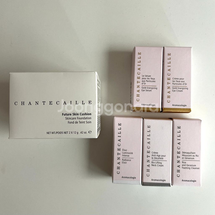 샹테카이 쿠션 샹테카이 퓨처 스킨 파운데이션 쿠션 / 28.03 아우라 색상입니다. (본품+리필 같이 들어있습니다.) 정가 21만 9천원 - 샹테카이 골드 아이 세럼 / 26.10 - 샹테카이 골드 아이 크림 / 26.07 - 샹테카이 래디언스 엘릭서 / 26.06 - 샹테카이 바이오 리프팅 넥 크림 / 26.05 - 샹테카이 라이스 앤 제라늄 포밍 클렌저 / 27.04 샹테카이 샘플 5종 같이 보내요~ 무료 배송