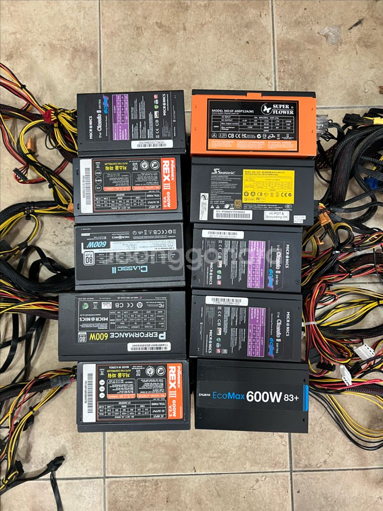 브랜드 파워서플라이 600W 일괄판매 합니다! 테스트, 콤프레샤 청소 완료했습니다 모든 판매 상품 자체보증은 구매일로부터 7일입니다. 구매 후 취소 및 단순 변심은 보증안해드립니다. 감사합니다. 택배비 별도 작은 박스 4,000 큰 박스 5,000원입니다. (로젠택배 지정) 평일(월~금) 오후4시 입금분 당일 출고!(오후5시 일괄발송) 주말(토/일), 법정 공휴일 택배발송X