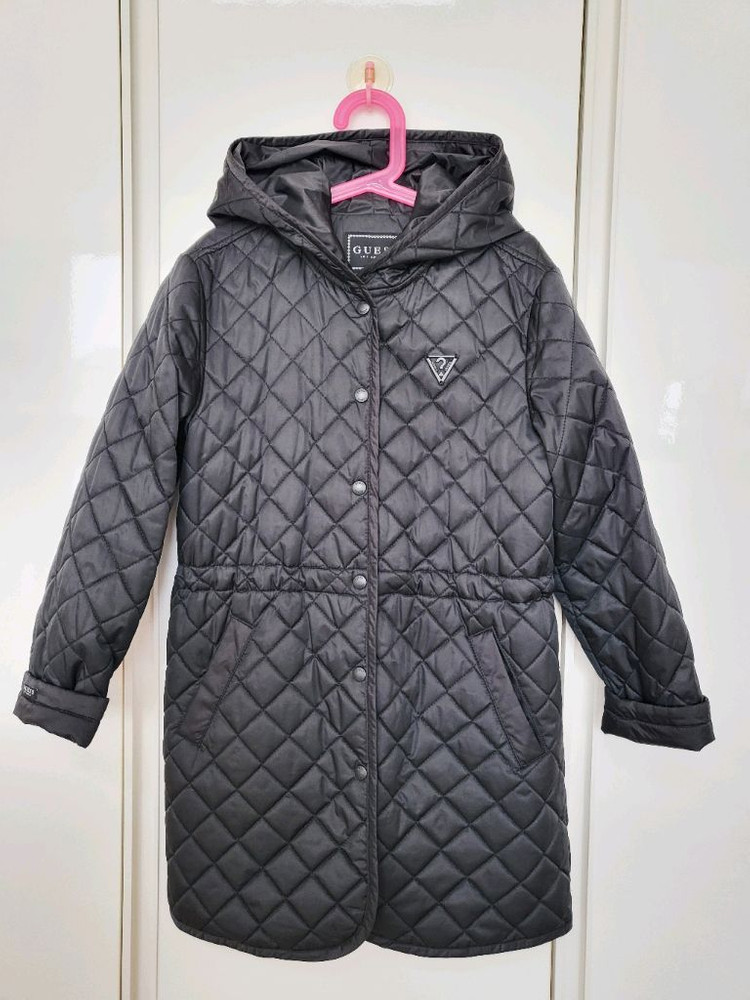 guess 게스 키즈 여아 퀼팅 자켓 판매합니다 색상은 블랙이며 살짝 누빔이 되어 있고 허리 스트링으로 조절 가능하며 지금부터 입기 좋습니다 구매 후 두어번 밖에 입지 않아 상태 최상입니다 사이즈 145이며 소매를 접혀 입어도 예쁘기에 낙낙하게 120부터 정사이즈 140까지 가능합니다